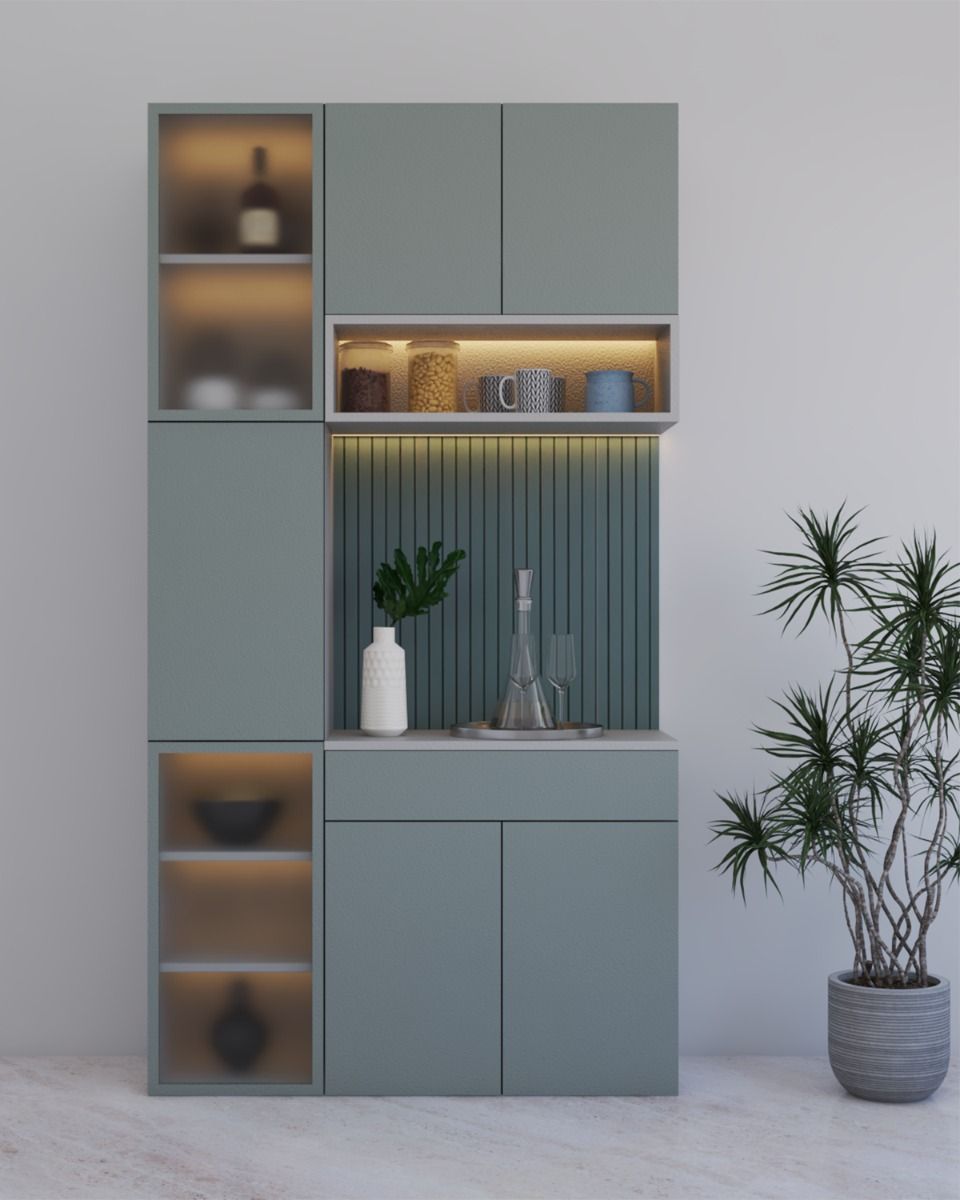 We wanted a compact yet classy bar setup for our dining area, and Platinum Modular nailed it! The unit has just the right mix of open shelves, bottle racks, and a hidden drawer for bar tools. The matte black and woodgrain finish looks so premium.